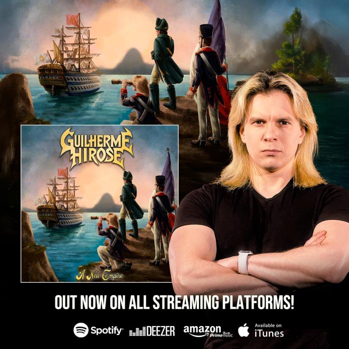 O renomado vocalista de power metal Guilherme Hirose anuncia o lançamento de seu mais novo single solo, intitulado "A New Empire". A faixa já está disponível em todas as plataformas digitais, tendo sido lançada no dia 23 de agosto de 2025, prometendo uma imersão sonora épica inspirada em um momento crucial da história.