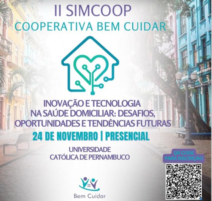 II SIMCOOP - Simpósio Multiprofissional da Cooperativa Bem CuidarO II Simpósio da Cooperativa Bem Cuidar acontecerá na Faculdade Católica de Pernambuco - UNICAPE, em Recife, no dia 24 de novembro, reunindo profissionais, acadêmicos e empresas que atuam na saúde domiciliar para um debate necessário sobre o futuro dessa área em crescimento acelerado no Brasil.